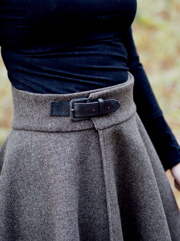 Classic wool and Luxus wool has the same velcro fastening but the linen variant the overlapping fastening has long strips. We can of course make all of them with velcro fastening too! (For custom orders it is also available with other options.) Luxus’s hem is 8 meters and has almost twice as much fabric as the Classic but the waist and pleating looks the same.